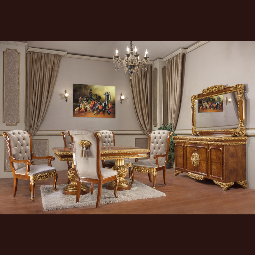 Table + 6 chairs + 2 Arm chairs + Buffet + Mirror